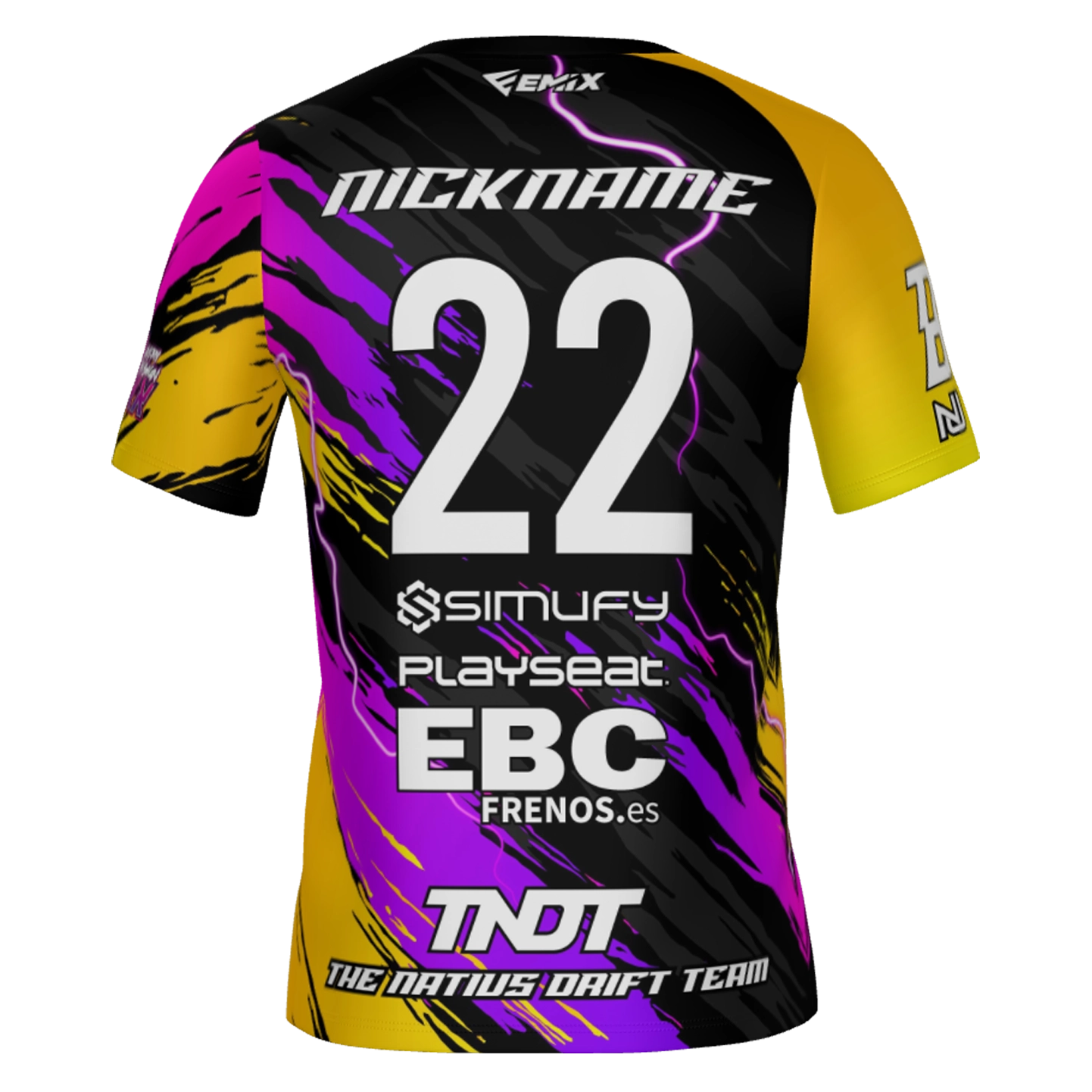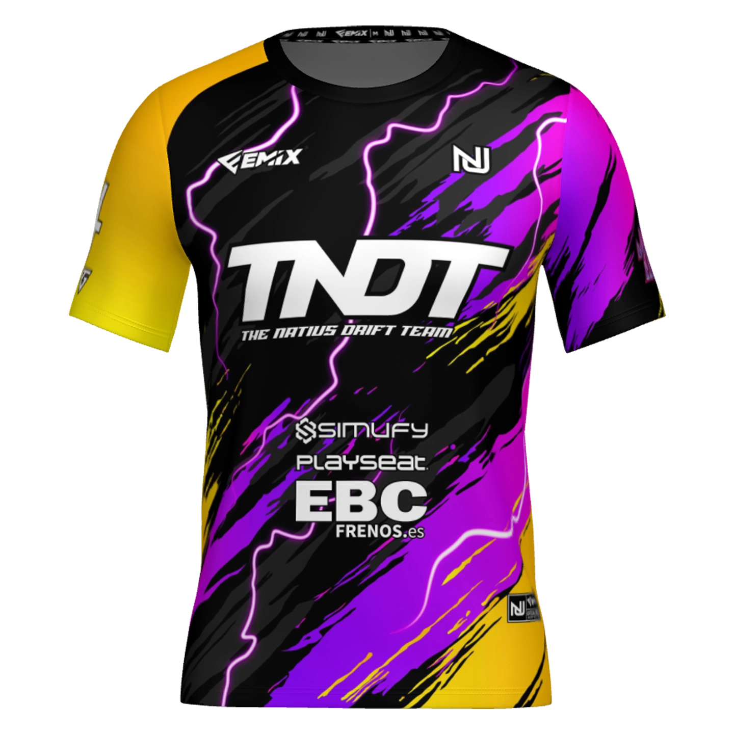 La camiseta de TNDT combina colores flúor, energía visual y espíritu comunitario. ¡Ponte los colores de NatiusJR y haz que cada derrape y cada carrera llamen la atención en la pista!